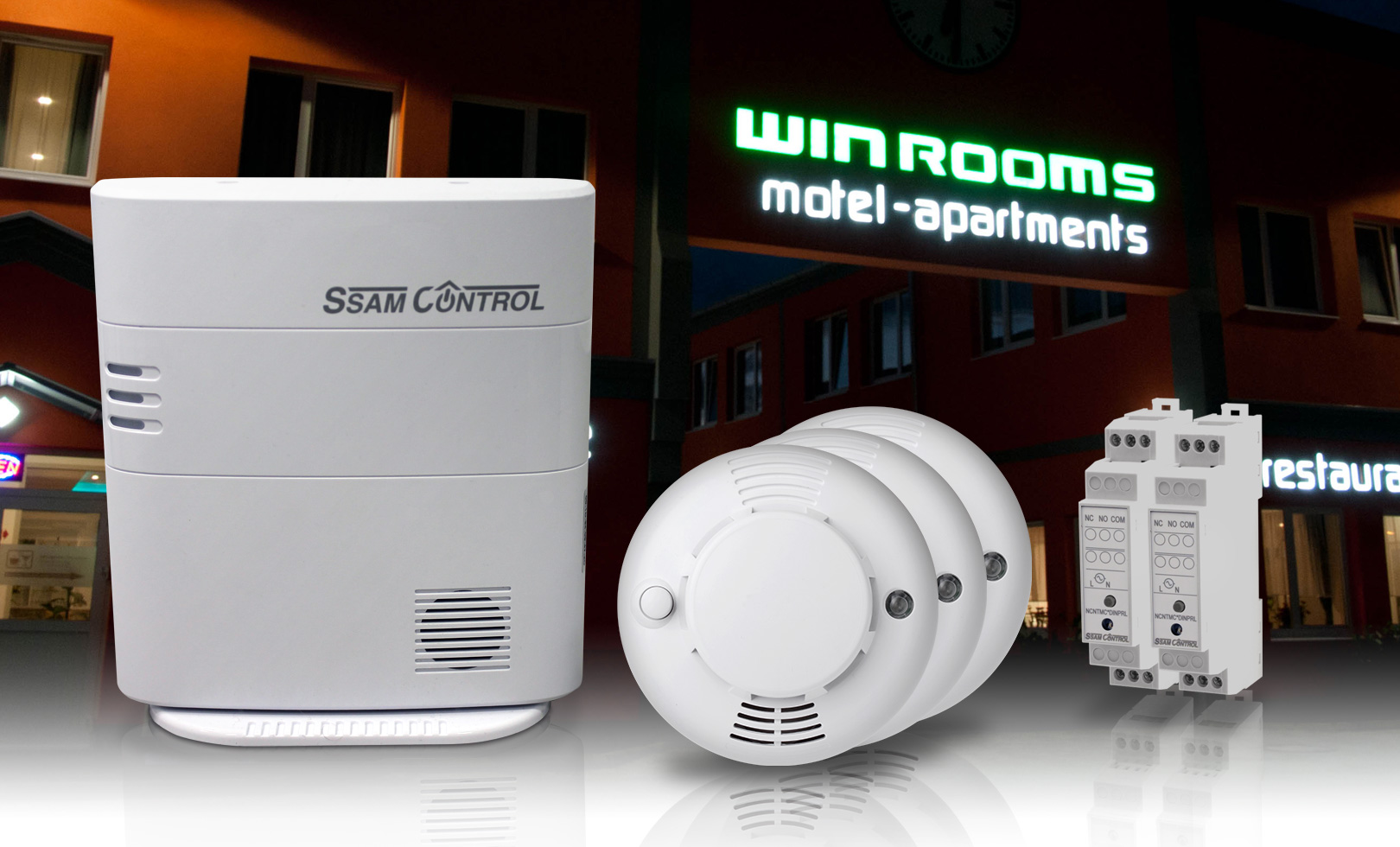 SSAMCotrol bietet hierfür die optimale Grundlage. Mit diesem Startpaket kann ein Gästezimmer mit Brandmelder, sowie zwei Schaltaktoren (z.B. für Licht und Elektro-Heizung) ausgestattet werden. Ein späterer Ausbau mit weiteren Zimmern oder zum klompetten Alarm- und Smarthome-System ist jederzeit kostengünstig möglich.